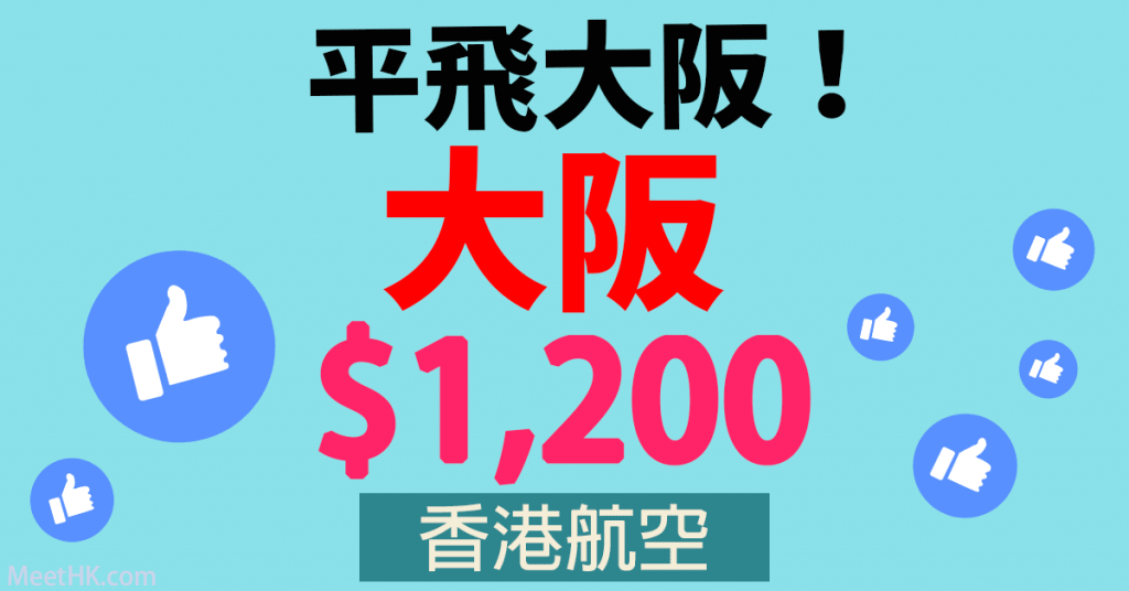 平飛大阪!可早機去晚機返!仲賣到下年7月添!包20kg行李!香港往返大阪只需$1,200 – 香港航空