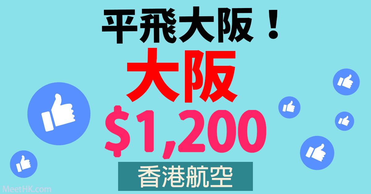 想平飛大阪!香港航空大阪平飛賣到下年7月啦!$1,200飛大阪!