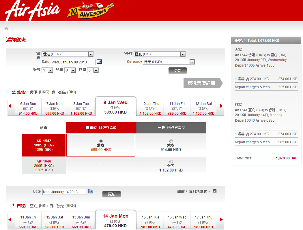 為左慶祝增加航班,亞航推出左限時優惠,香港至沙巴單程連稅只需$599,來回連稅都只係$1,078,優惠力度接近對上一次Big Sale,而且出發日期比Big Sale近得多