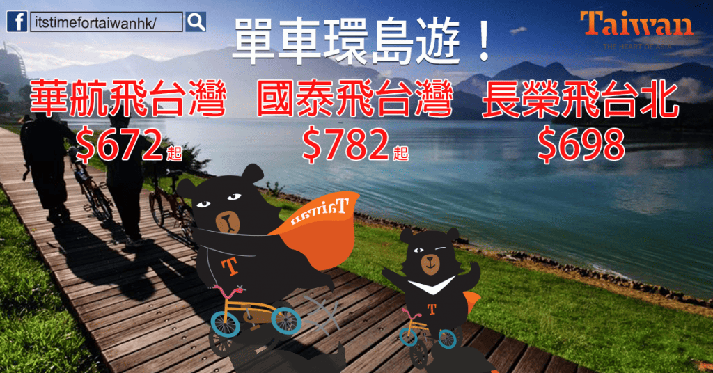 單車環島遊!華航飛台灣$672起(可open jaw),國泰飛台灣$782起(可open jaw),長榮飛台北$698 – Wefly.com.hk (優惠至8月23日)