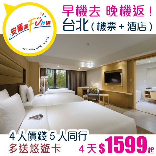 台北套票4人價錢 5人同行!坐華航靚時間飛台北!台北松哖酒店4日3夜套票每人只需$1,599起!仲送悠遊卡 – 安運滿Fun遊