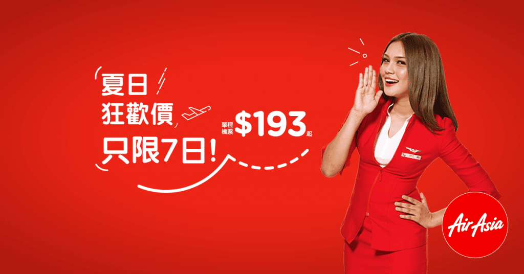 泰國夏日狂歡價!限時7日!香港飛布吉來回連稅$909起、曼谷/清邁$929起 – AirAsia (優惠至8月27日)