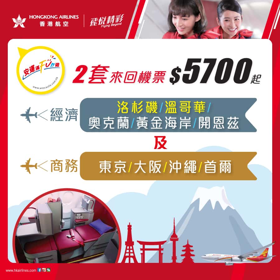 抵玩組合優惠再現!香港航空長線(溫哥華/奧克蘭/洛杉磯/黃金海岸/開恩茲)經濟艙+日韓商務艙組合套票只需$5,700 – 安運滿Fun遊 (優惠至9月18日)