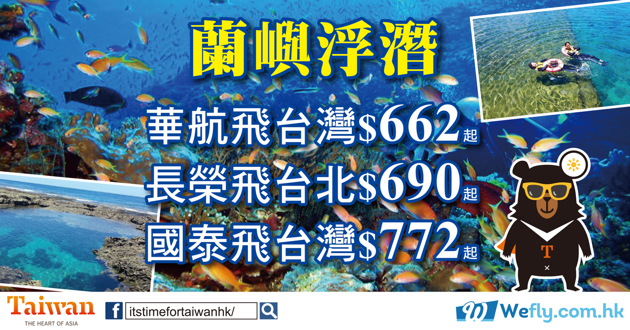 蘭嶼浮潛!華航飛台灣$662起(可open jaw),國泰飛台灣$772起(可open jaw),長榮飛台北$690 – Wefly.com.hk (優惠至8月30日)