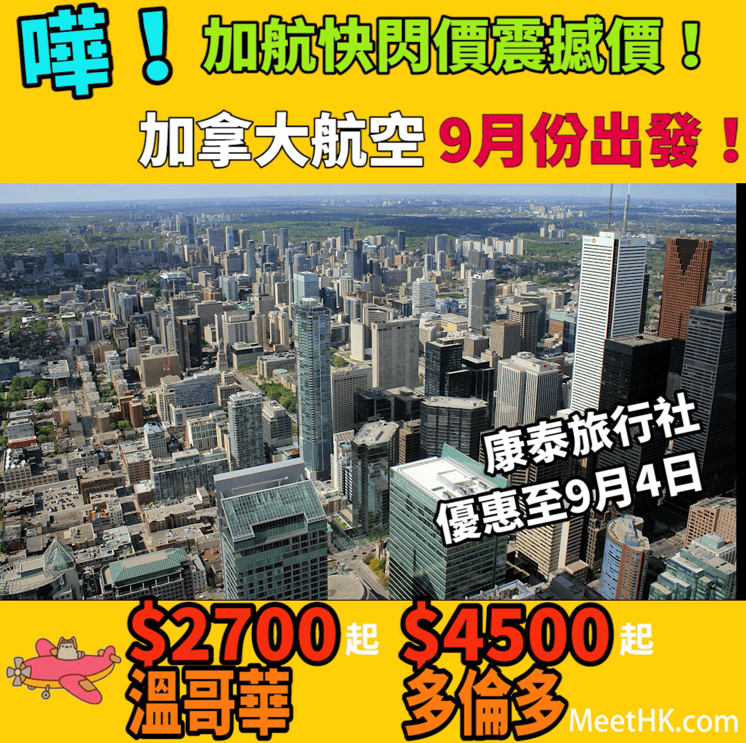 加航快閃價震撼價!9月份出發!加拿大航空直飛溫哥華來回只需$2,700起,多倫多$4,500起 – 康泰旅行社 (優惠至9月4日)