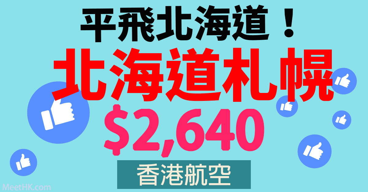 抵呀!平飛北海道!明年6月28日前出發!包20kg行李!香港往返札幌只需$2,640 – 香港航空