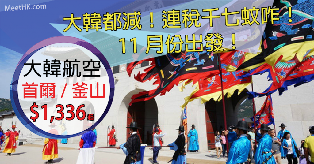 抵呀!大韓都減!連稅千七蚊咋!11月份出發!香港往返首爾、釜山只需$1,336起 – 大韓航空 (優惠至9月30日)