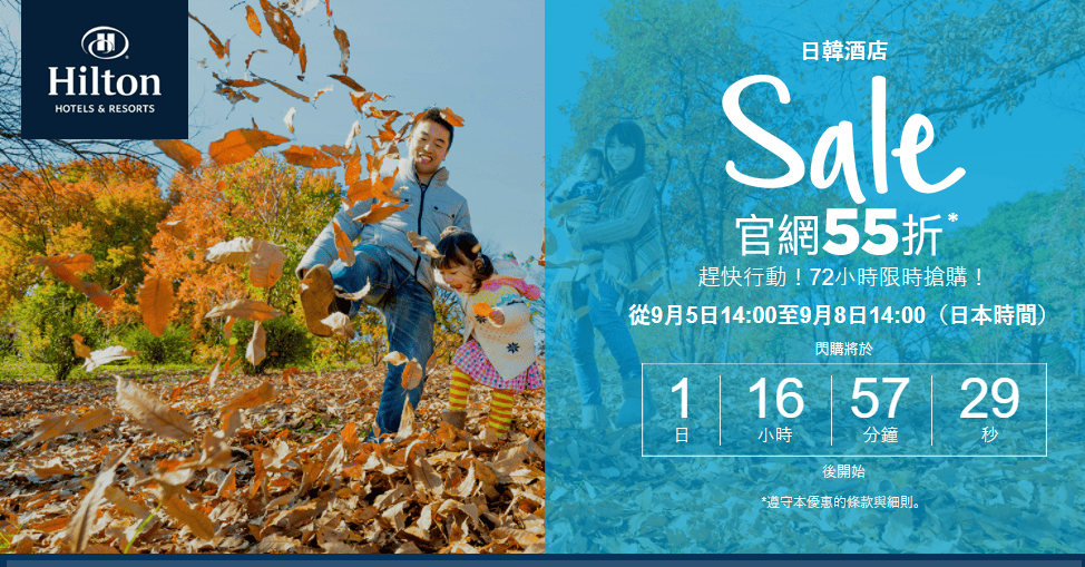 限時72小時!明年2月28日前入住!希爾頓Hilton日本韓國東南亞酒店5折優惠,星期二1pm開搶! (優惠至9月8日1pm)