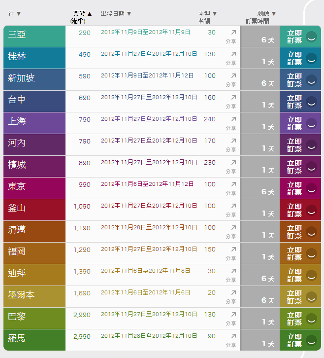 港龍航空: http://www.dragonair.com/ka/zh_HK/latest-offers/flights/fanfares/index.html