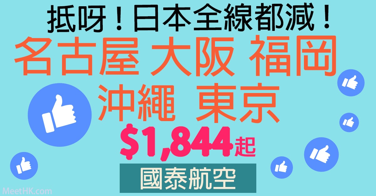抵呀!國泰日本線減啦!明年3月25日前出發!東京、大阪、名古屋、福岡、沖繩只需$1,844起 – 國泰航空 (優惠至10月31日)