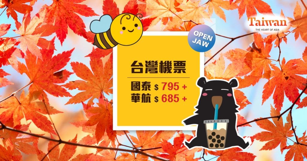 快閃追楓!國泰/華航台灣機票減$150!可open jaw!國泰飛台灣$795起,華航飛台灣$685起 – Bees.travel (優惠至9月16日)