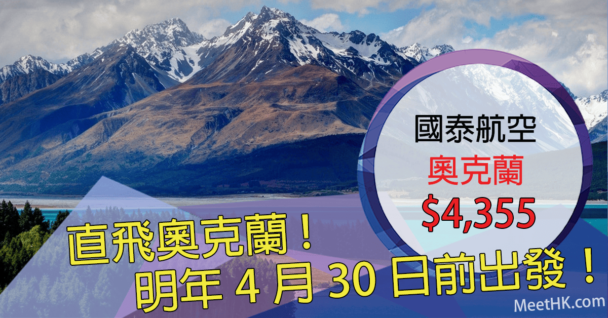 國泰直飛新西蘭!明年4月30日前出發!香港往返奧克蘭只需$4,355起 – 國泰航空 (優惠至10月3日)