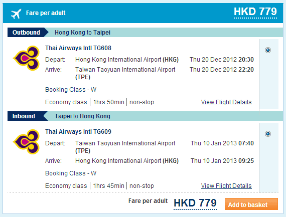 所以泰航都面對現實,再減多些,香港往返台北只需$779,連埋稅都只係$1,472