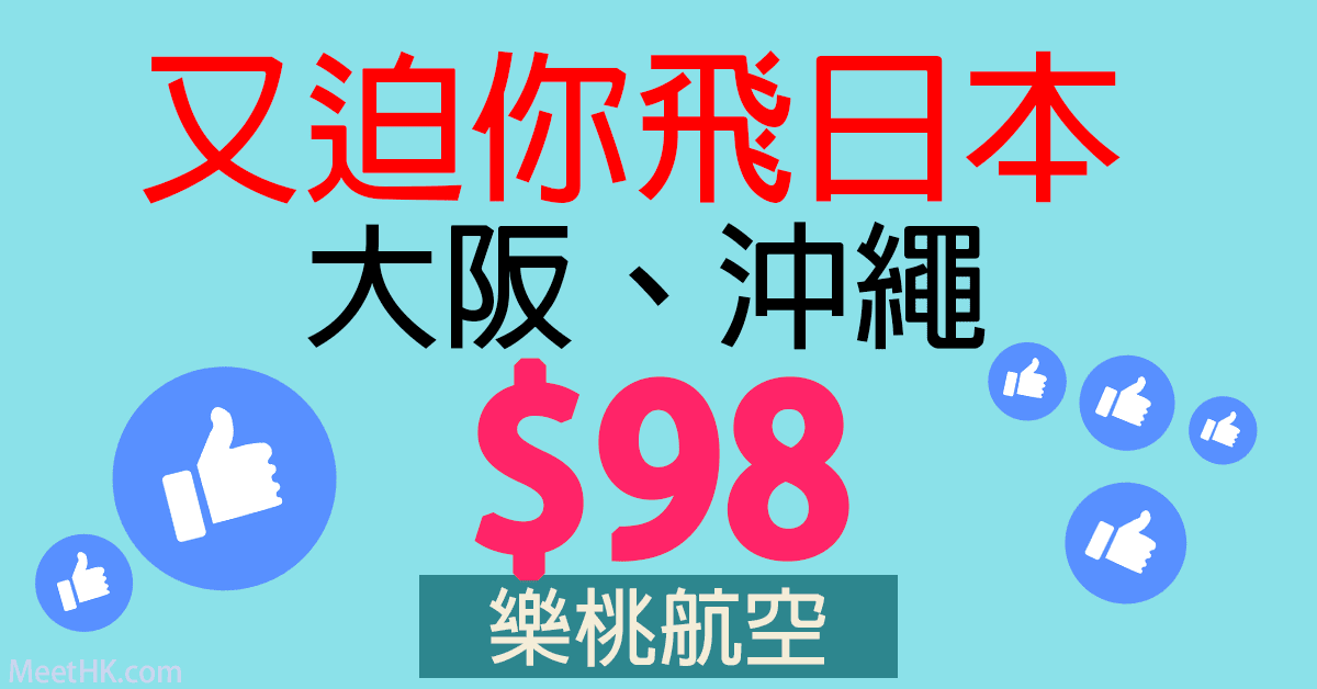 嘩!$98,$98,$98,又搶啦!來回連稅四百幾飛沖繩,連稅五百幾飛大阪!超爆抵!