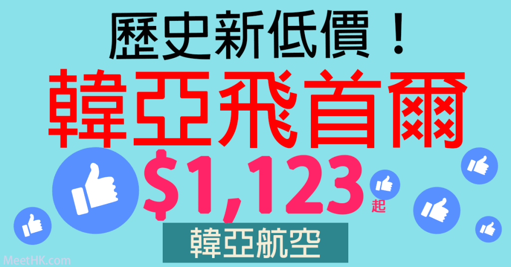嘩!連稅千五蚊坐韓亞飛首爾!歷史新低價!10月14日前出發!香港往返首爾只需$1,123起 – 韓亞航空 (優惠至9月29日)