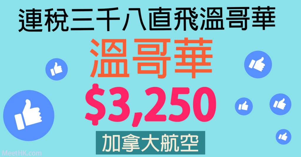 香港直飛溫哥華來回只需$3,250,連稅$3,878,呢個價以加航黎講算係好平