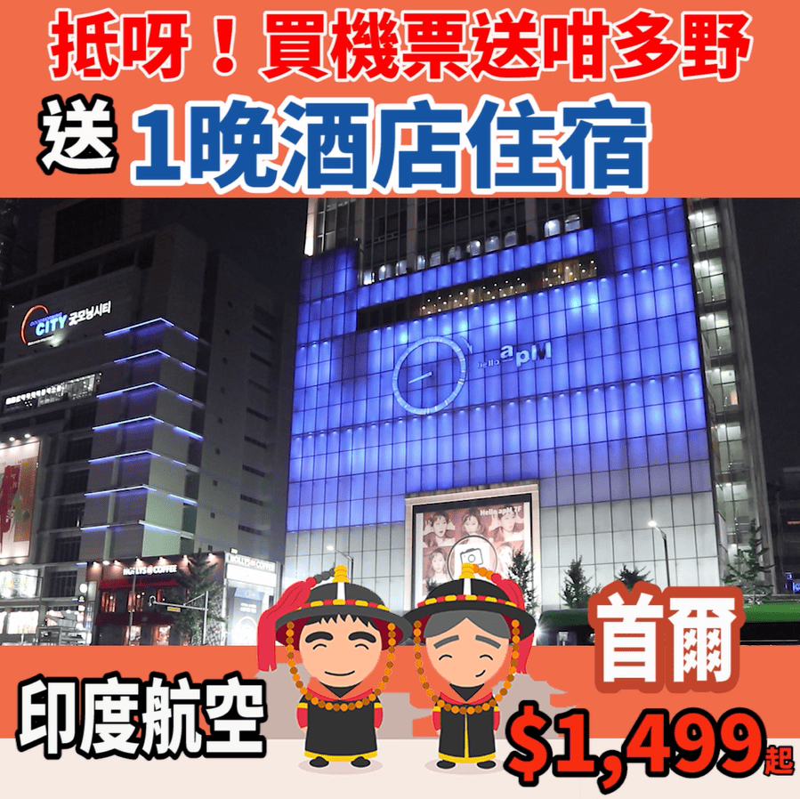印度航空香港飛首爾來回只需$1,499起,連稅$2,034起