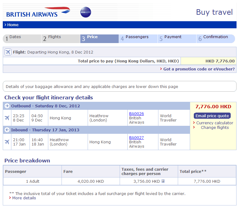 英國航空推出左新優惠,香港往返倫敦只需$3,980,連埋稅都只係$7,776,呢個價以直航來計,呢個價應該係最抵