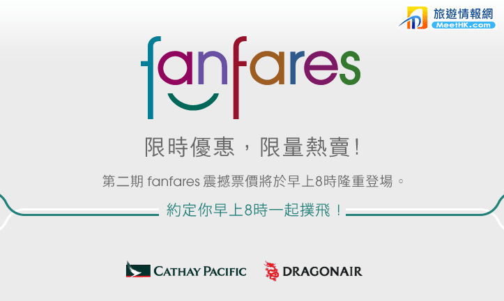 經過左第一期國泰同港龍航空fanfares震撼優惠,第二期fanfares明天早上8時又開搶,而地點同價錢應該晚小小就會公佈,我地會留意住第一時間話俾大家知