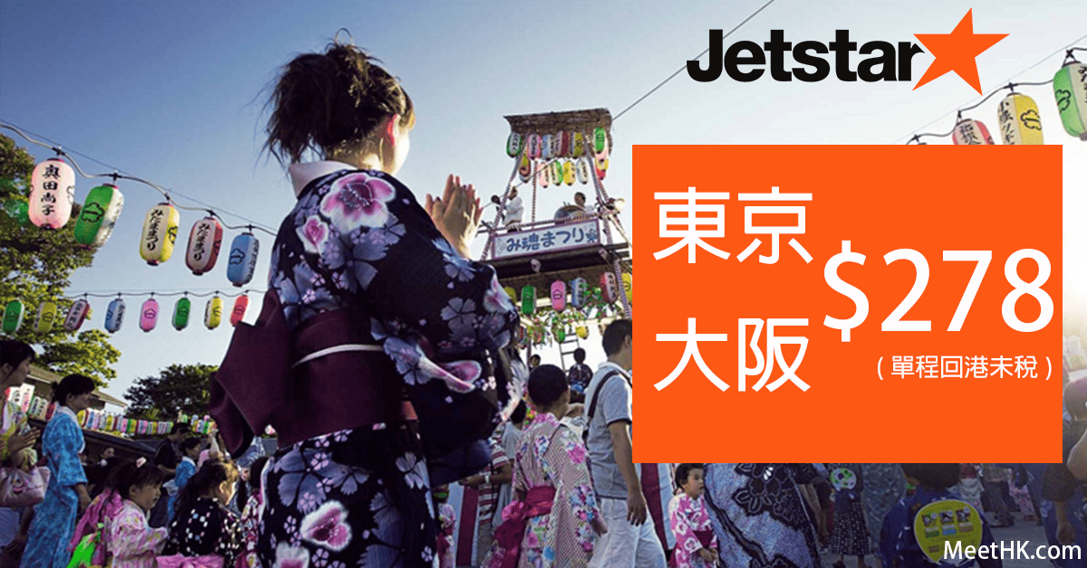 下午5點開賣!明年2月1日前出發!大阪、東京飛香港單程只需3,990円 – Jetstar Japan (優惠至10月5日)
