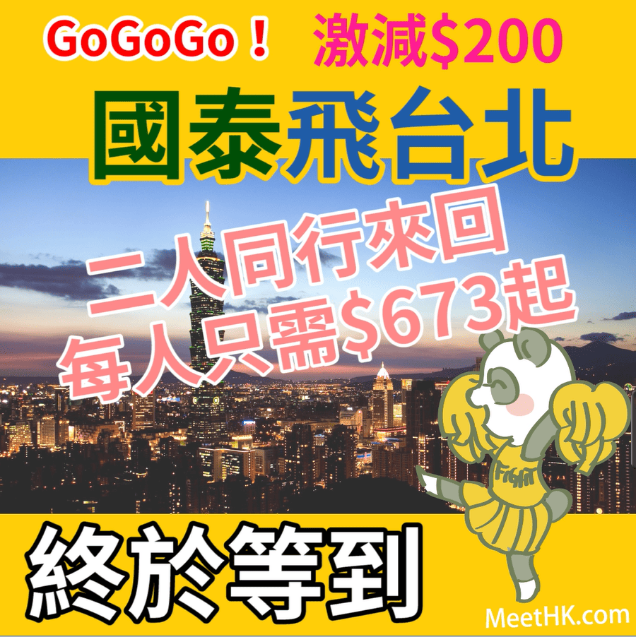 終於減啦!國泰飛台北$673咋!仲有熱飛機餐 + 30kg行李!國泰飛台北二人同行來回每人只需$673起 – GoGoGo!(優惠至9月30日)