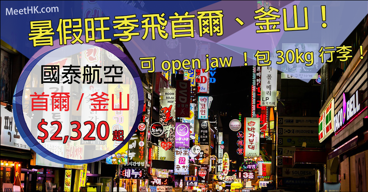 國泰明年暑假旺季飛首爾/釜山!open jaw都得!香港往返首爾、釜山只需$2,320起 – 國泰航空