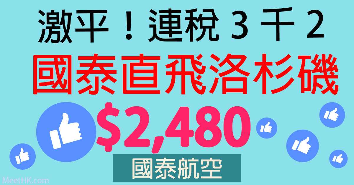 激平!國泰真係黎料!連稅三千二直飛洛杉磯!香港直航往返洛杉磯只需$2,480 – 國泰航空 (優惠至10月13日)