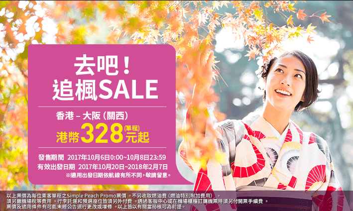 平飛大阪!明年2月7日前出發!香港飛大阪單程只需$328 – 樂桃航空 (優惠至10月8日)