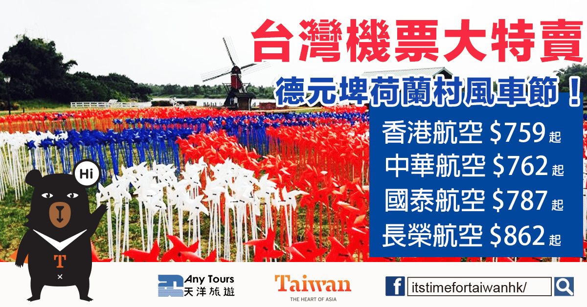 2017台南德元埤荷蘭村風車節 !台灣機票大特賣!國泰飛台北$787、華航飛台灣$762起,長榮飛台北$862起 – Any Tours天洋旅遊