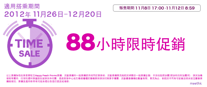 訂票日期:2012年11月8日5pm至11月12日8:59am