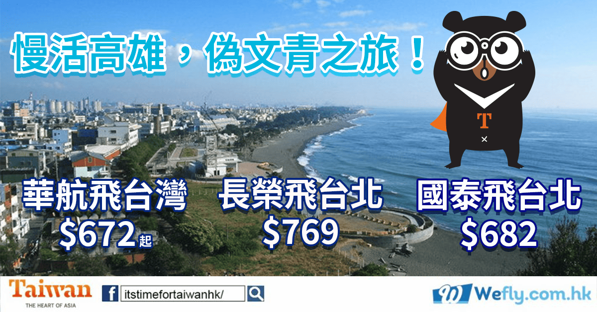 慢活高雄,偽文青之旅!華航飛台灣$672起(可open jaw),國泰飛台北$682,長榮飛台北$769,港航Business Class飛台北$1,589 – Wefly.com.hk (優惠至10月18日)