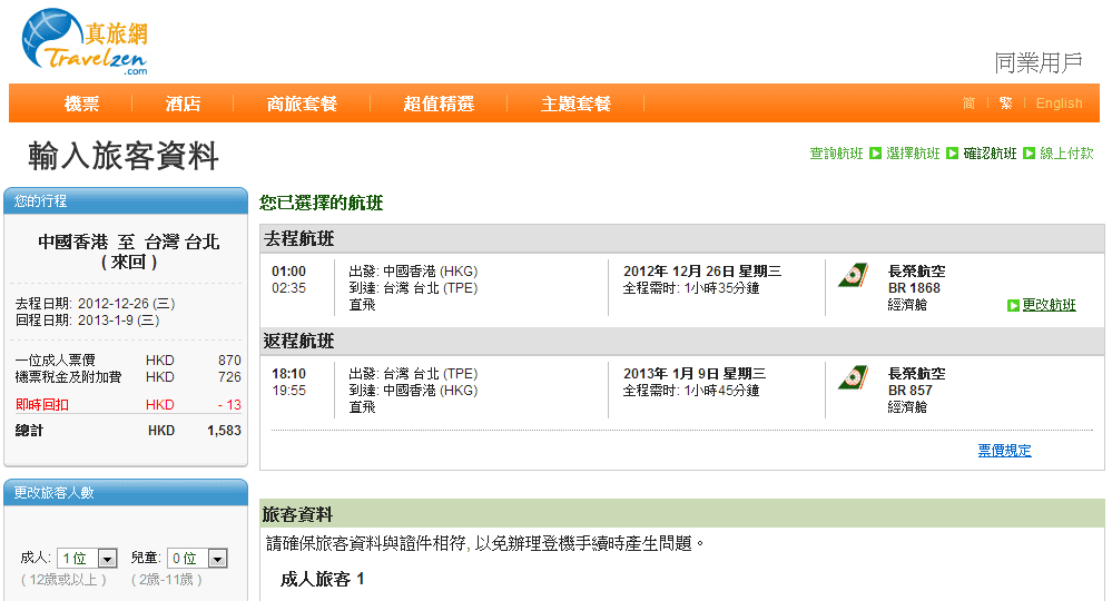 而另一隻優惠去程限坐12月26日BR1876 00:30-02:05、BR1868 01:00-02:35