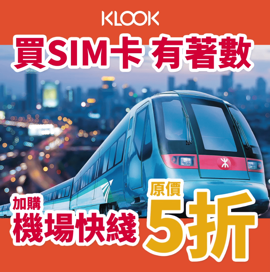 秋季全線繼續減!買指定SIM Card即可以半價換機場快綫車票!全線行程、景點活動門票、交通票券滿$1,000減$100!– Klook (優惠至10月23日)