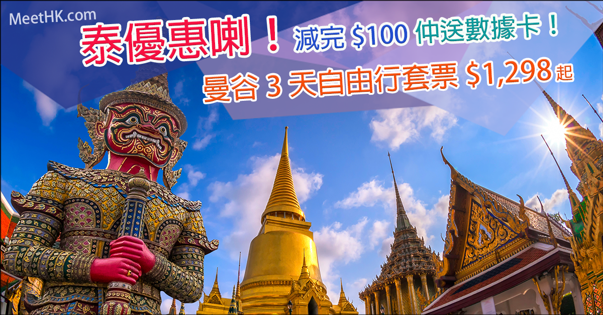 泰‧優惠啦!曼谷套票每人減$100!曼谷Vic3 Bangkok 3天套票每人$1,298起,仲送5天泰國無限數據卡 – 永安旅遊 (優惠至10月31日)