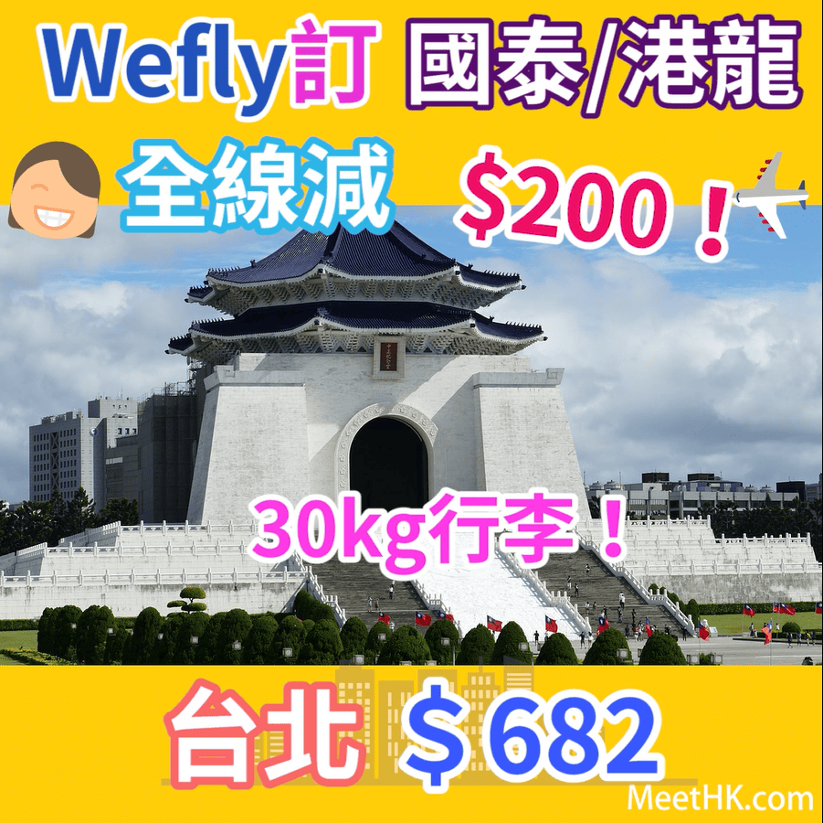配合Wefly.com.hk限時3日全線國泰/港龍機票每張減$200「