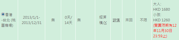 另外長榮航空亦都有多隻2013年唔同日子出發既優惠,香港往返台北只需$1,300