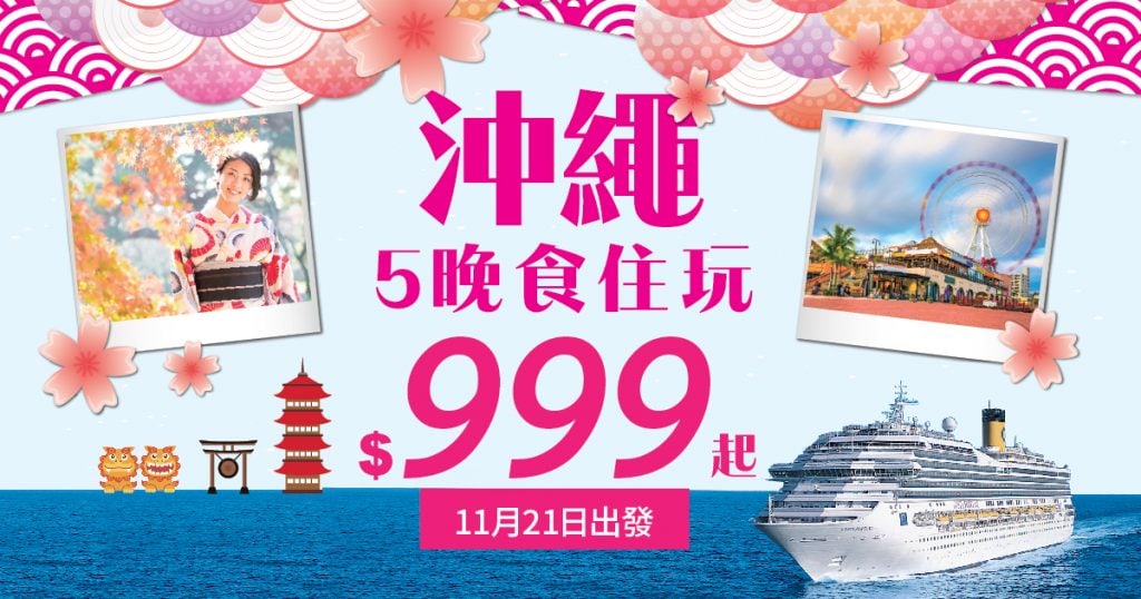 抵呀!把握機會平坐遊輪遊日本!包食包住!香港上船,5晚日本沖繩遊輪假期每人只需$999起 – 西敏遊輪 (優惠至10月31日)