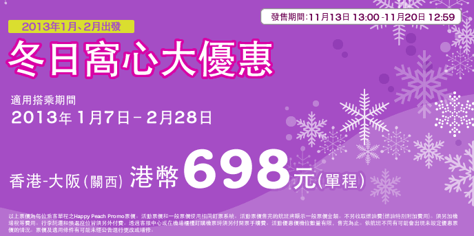 呢排樂桃航空既優惠真係無停過,對上一期優惠今朝先岩岩完,佢地又推出新一期優惠,明天(11月13日)1pm開賣