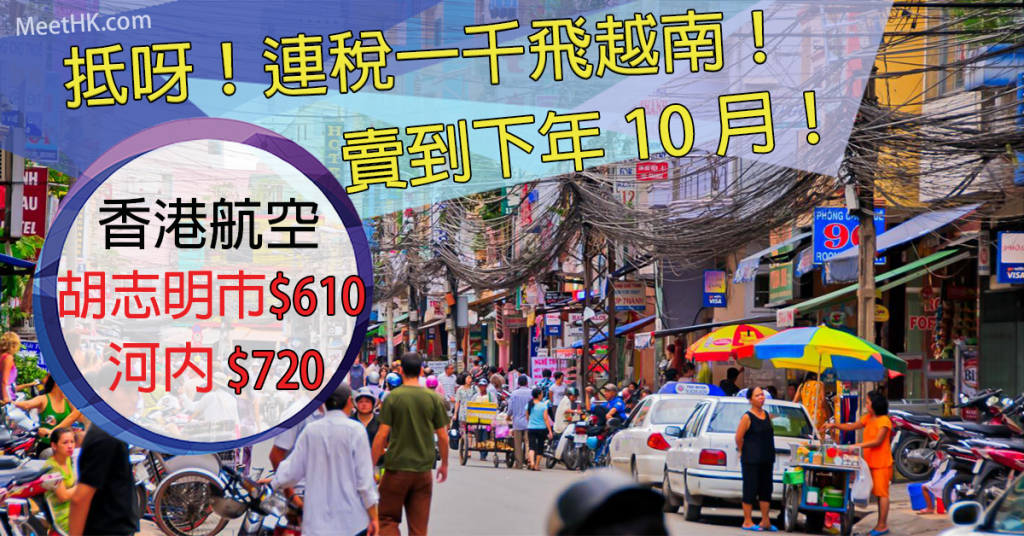抵呀!連稅一千飛越南!包20kg行李!賣到下年10月!香港往返胡志明市只需$610起、河內$720起 – 香港航空