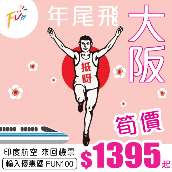 Funfun.travel 推出印航飛大阪預留機位優惠