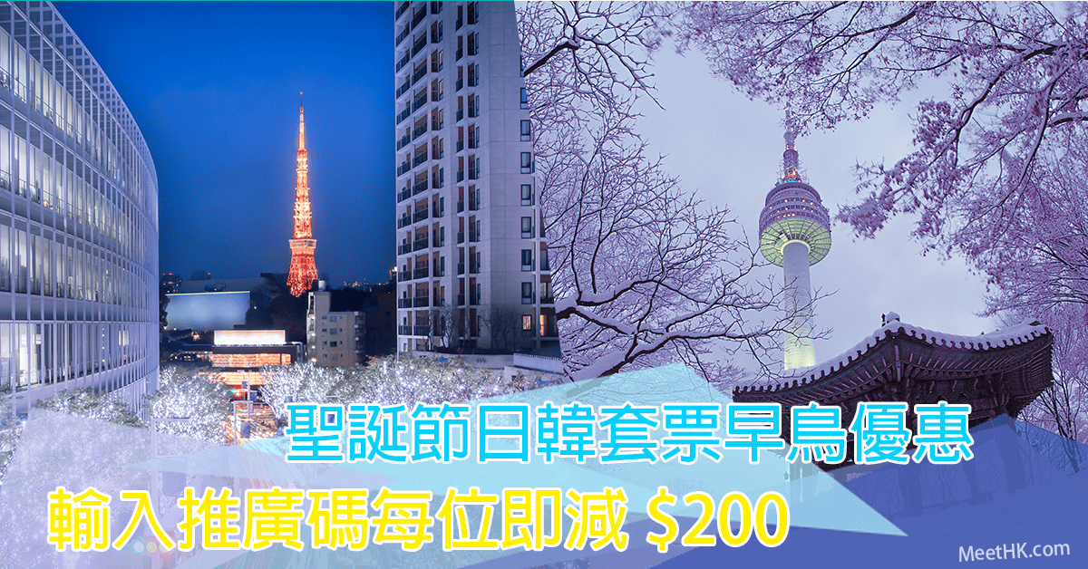 聖誕旺季飛日韓!早鳥套票優惠!每位再減$200!東京3日2夜自由行套票$4,466起、首爾$2,967起 – 永安旅遊 (優惠至11月12日)