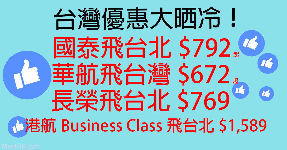 個個月都想飛轉台灣!華航飛台灣$672起(可open jaw),國泰飛台北$792,長榮飛台北$769,港航Business Class飛台北$1,589 – Wefly.com.hk (優惠至11月8日)