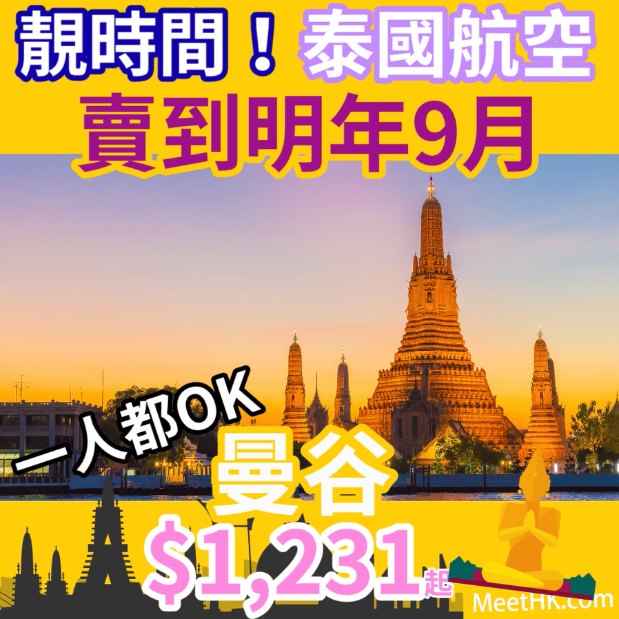 曼谷泰抵啦!泰航賣到明年9月啦!香港往返曼谷只需$1,231起 – 泰國航空