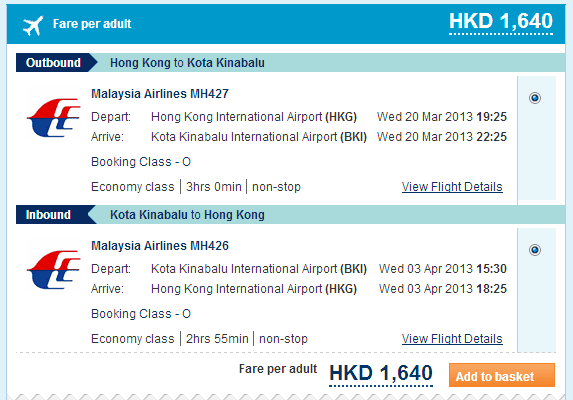 馬航尋日就推出左隻沙巴優惠,香港往返沙巴只需$1,600,連埋稅$2,418,比之前馬航40週年優惠既時候貴左百幾