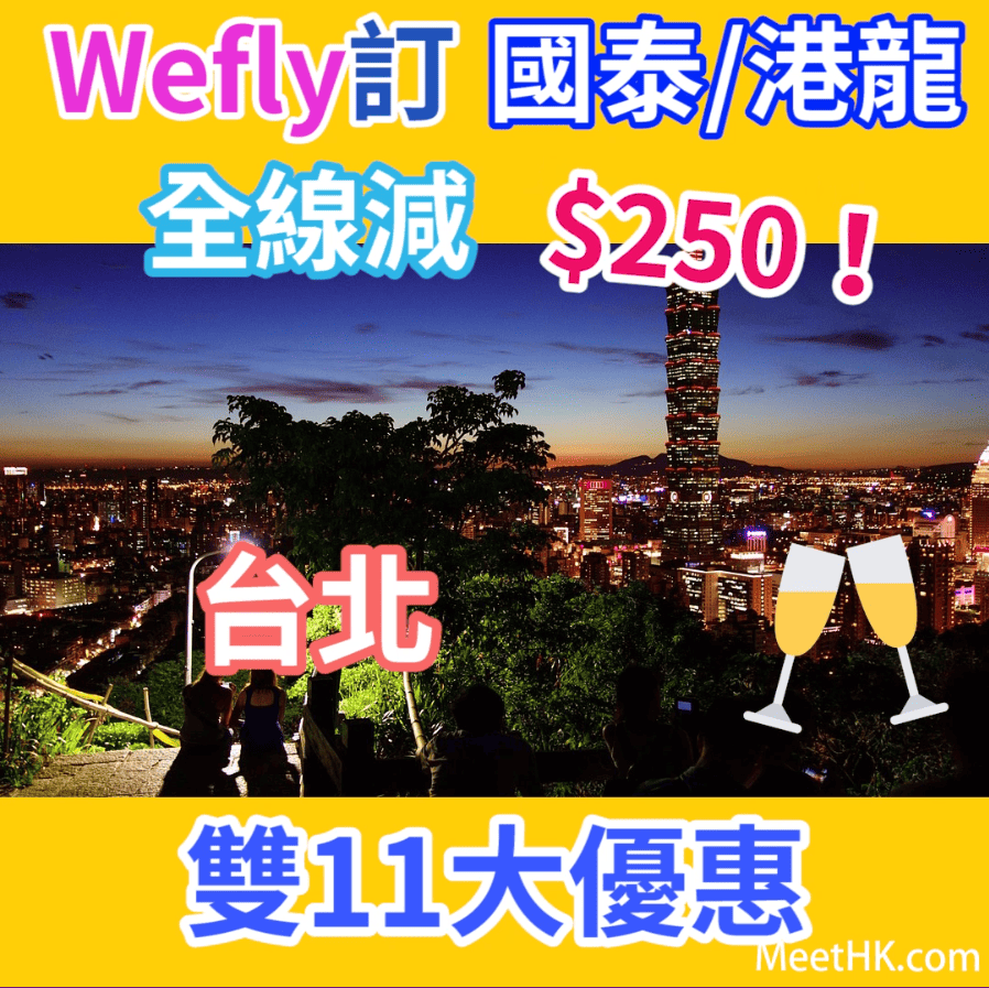Wefly.com.hk推出左限時3日雙11全線國泰/港龍機票每張減$250「