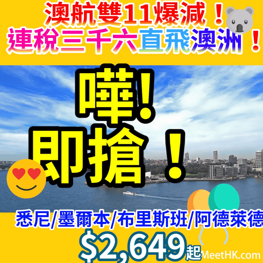 嘩!即搶!澳航雙11爆減!連稅三千六直飛澳洲!暑假旺季都有!明年9月15日前出發!澳航香港飛悉尼/墨爾本/布里斯班/阿德萊德來回只需$2,649起,基督城/奧克蘭/威靈頓$3,331起 (可open jaw) – Bees.travel (優惠至11月13日)