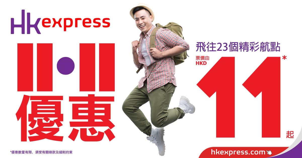 HK Express 會係今晚12點推出限時2日雙11大優惠!