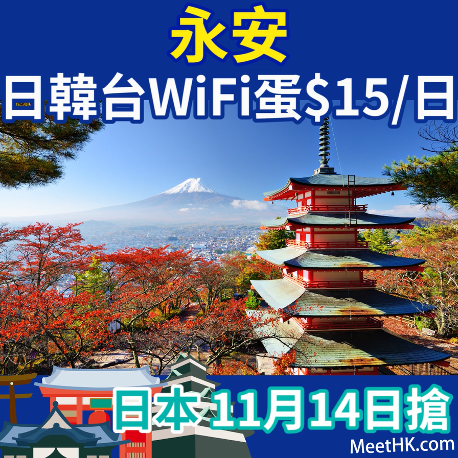 永安旅遊會係聽日(11月14日)開始一連三日朝10晚10推出日韓台4G無限數據Banana Wi-Fi蛋限時優惠!
