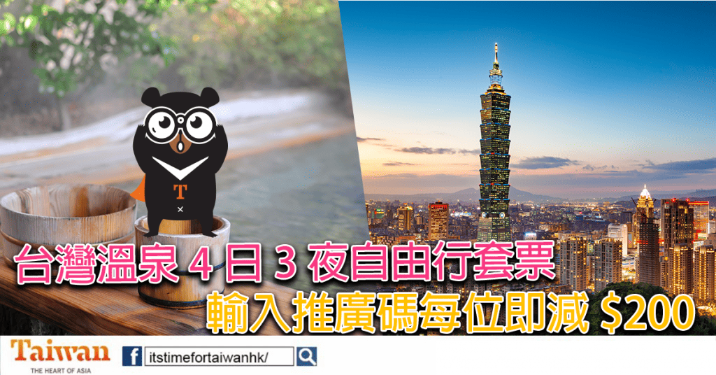 港航3日2夜台灣溫泉自由行套票每人只需$1,325起,連稅$1,710起