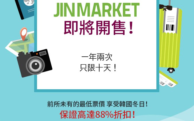 連稅千二,三飛首爾!仲包15kg寄艙行李!明年3月24日前出發!香港/澳門往返首爾只需$800起 – 真航空 Jin Air (優惠至12月1日)